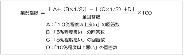 指数は-100から100までの数値で表わされ、全社が「10%程度以上良い」と回答した場合は100 、全社が「10程度以上悪い」と回答した場合は-100となる。