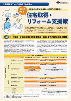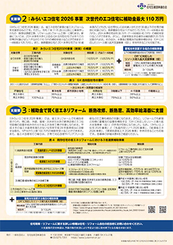 住宅取得・リフォームに関する支援策リーフレット <概要> 令和8年度税制改正大綱にもとづく住宅ローン減税および経済対策で措置された「みらいエコ住宅2026事業(国土交通省・環境省)」、「先進的窓リノベ2026事業(環境省)」、「給湯省エネ2026事業(経済産業省)」、「賃貸集合給湯省エネ2026事業(経済産業省)」など、住宅取得・リフォームの支援策をご紹介するリーフレットです。※税制改正については関連税制法案が今後の国会で成立することが前提です。 PDFを見る 出版物 機関誌「住団連」 住団連プレス その他出版物